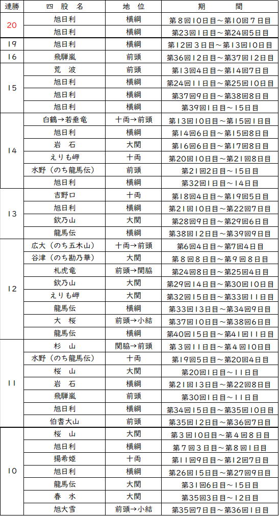 連勝記録(10連勝以上)
